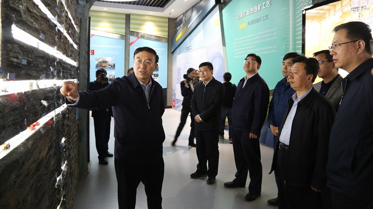 李沛興先后深入尾礦庫、停機坪、1190主平硐口、科技中心、員工公寓等地調(diào)研。在尾礦庫,李沛興詳細詢問了尾礦庫庫容、服務年限、防洪標準、安全保障和尾礦庫在線監(jiān)測系統(tǒng)運行情況等內(nèi)容,并與陪同人員就尾礦庫的安全管理工作做了交流。在停機坪,李沛興認真聽取了建設內(nèi)容、資源儲量和建設成果的詳細匯報后饒有興趣地說:“從高處鳥瞰,礦區(qū)就像一個聚寶盆,生產(chǎn)廠房、員工公寓、體育場館等建筑物布局科學合理,其外觀造型和色彩與周邊環(huán)境自然融合,這樣的礦區(qū)是非常少見的”。在采礦中控室,李沛興通過監(jiān)控視頻詳細查看了井下采礦場景和各運輸中段生產(chǎn)情況,在科技中心5D影視廳,李沛興認真觀看了《金徽礦業(yè)郭家溝鉛鋅礦采礦篇》,并指出:“完善的井下六大系統(tǒng)對礦山企業(yè)來說非常重要,金徽股份在這方面做得比較到位,應該組織省內(nèi)其他企業(yè)來多看、多學習”。隨后,在員工公寓調(diào)研過程中,陪同人員重點就企業(yè)文化建設和公司關心關愛員工的一系列舉措做了全面匯報,期間,李沛興還向一名員工了解了公司提供的免費就餐、免費住宿和五險一金等員工享受的福利待遇情況。