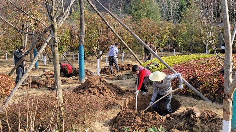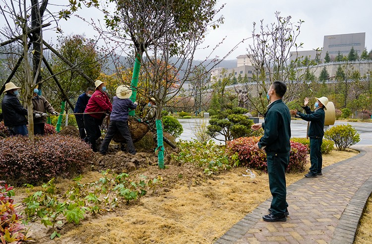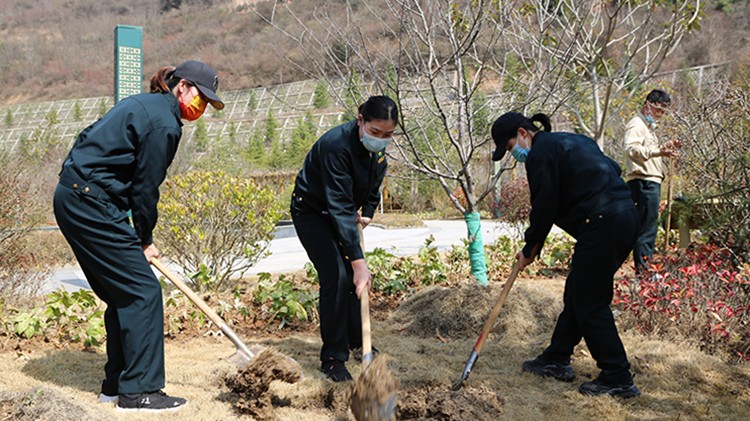 植樹活動現(xiàn)場,大家在做好疫情自我防護的同時,干勁十足。他們?nèi)迦俗园l(fā)成組,相互配合、默契協(xié)作,或扶樹填坑、或揮鍬培土、或提桶澆水,每個環(huán)節(jié)銜接有序,合力栽下一棵棵樹苗,也共同播下疫散春來、華枝春滿的勃勃生機。經(jīng)過幾個小時的努力,一株株新栽種的冬青、石楠、廣玉蘭、雪松等樹木迎風而立,為金徽股份增添了一片片濃濃春意。