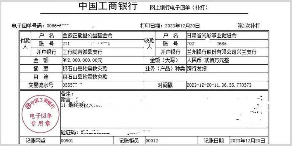 12月18日凌晨,6.2級地震突襲甘肅省臨夏州積石山縣,災(zāi)情牽動著全國人民的心。金徽正能量公益基金會通過甘肅省光彩事業(yè)促進(jìn)會為積石山地震災(zāi)區(qū)捐款200萬元,支持受災(zāi)地區(qū)緊急救援、受災(zāi)群眾安置和災(zāi)后恢復(fù)重建等工作。